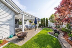 This large home features an open floor plan & is a single level home with approximately 1804 sq ft. Vaulted Ceilings, oversized kitchen with an Island Bar, A floor to ceiling Rock Gas fireplace in the living room, 4 bedrooms, 2 baths built in 2013. The backyard courtyard has a pergola covered patio,is fully vinyl fenced with custom landscape, ornamental maple and cherry trees, stone water feature, concrete edging, sprinklers and 2 outdoor storage sheds, a workbench in the 2 car garage. All major Appliances included. No pets, No smoking.